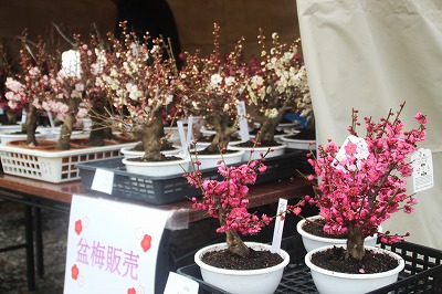 梅林片隅に盆梅と称する鉢植えを売る店が |